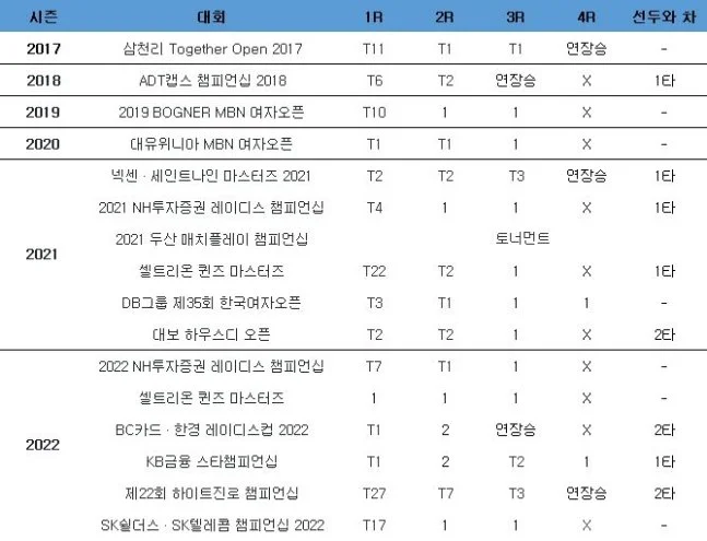 박민지 우승 대회 및 라운드별 순위. ⓒ 데일리안 스포츠
